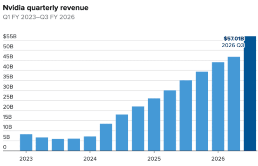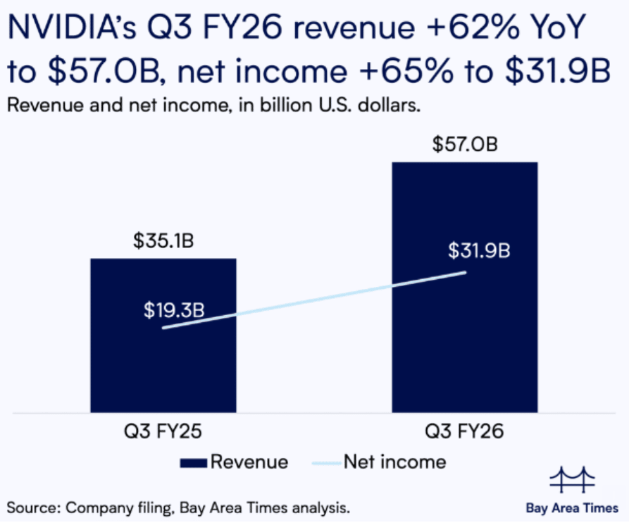 Revenue pe Q3: 57 de miliarde de dolari, o crestere de 62% year-over-year.