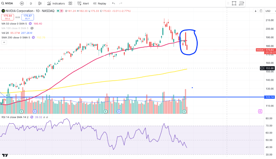 De aici si wick-ul foarte ciudat pe graficul pe daily al Nvidiei, urmat de un continuation azi: